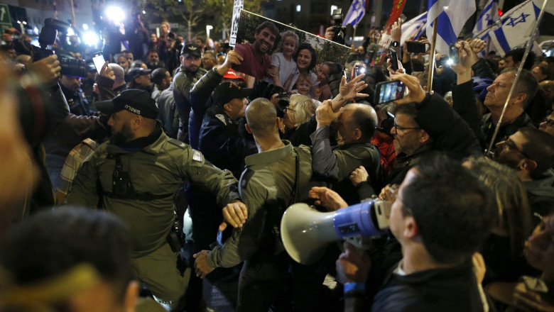 La Tel Aviv, manifestanții au scandat lozinci precum "Alegeri acum!" și au cerut ca Netanyahu să-și asume responsabilitatea pentru atacul terorist din octombrie, care a dus la moartea a peste 1.160 de persoane, în mare parte civili.